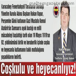 olarak Bu duygu ve düşüncelerle 19 Mayıs Atatürk’ü Anma, Gençlik ve Spor
